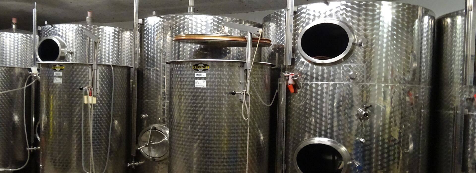 Im Keller, bzw. beim Weinausbau, arbeiten wir mit traditionellen und modernen Methoden, um die Qualität der Trauben für den Flaschenwein zu erhalten.